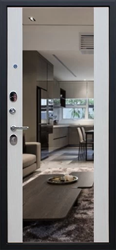 Надежная входная Дверь Вектор с зеркалом премиум класса по цене 49 281 руб. Большая толщина стали защитит от проникновения в ваш дом, квартиру или коттедж. Используется очень качественная фурнитура: замки, цилиндры, ручки, защелки. Покрытие и отделка двери изготовлено под внимательным контролем производителя. Дверь имеет долгий срок службы и гарантию.
