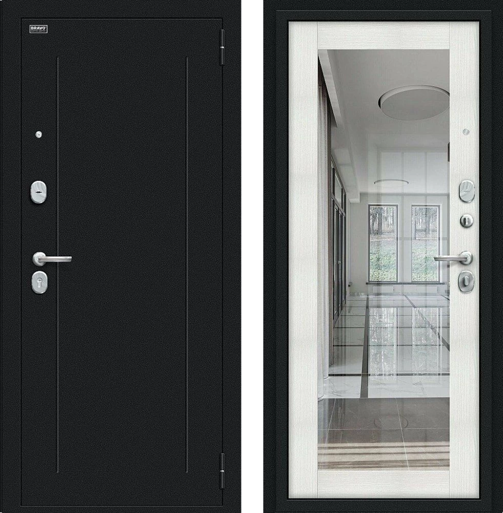 Надежная входная Дверь Браво Флэш Букле черное/Bianco Veralinga премиум класса по цене 33 081 руб. Большая толщина стали защитит от проникновения в ваш дом, квартиру или коттедж. Используется очень качественная фурнитура: замки, цилиндры, ручки, защелки. Покрытие и отделка двери изготовлено под внимательным контролем производителя. Дверь имеет долгий срок службы и гарантию.